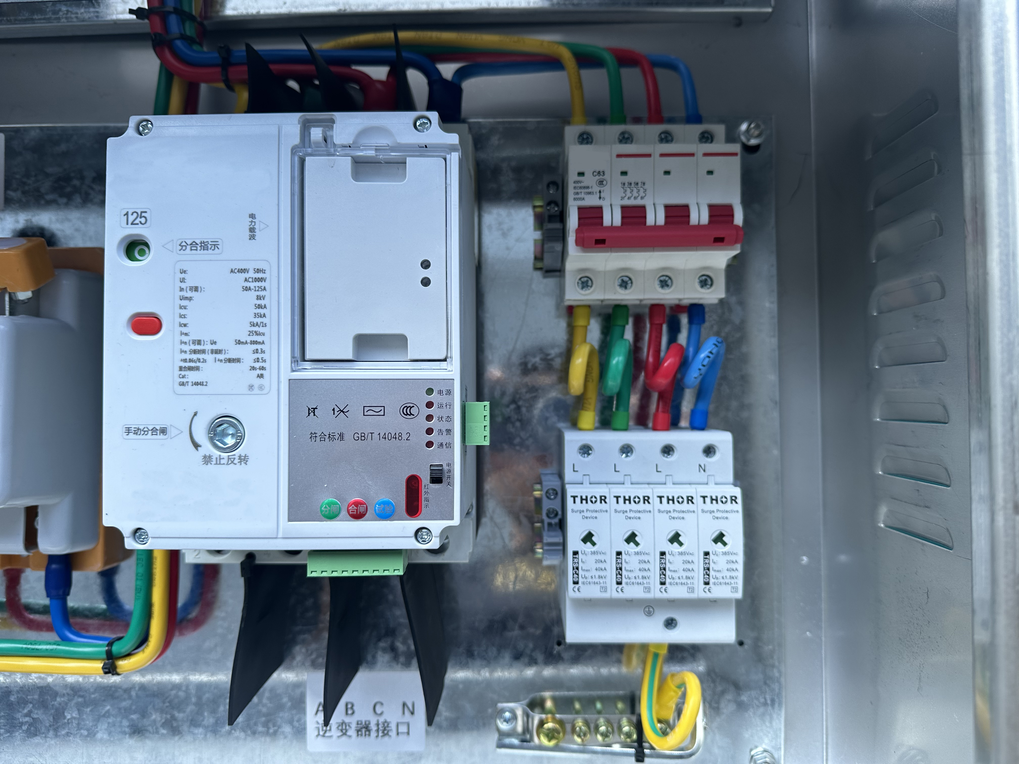 在光伏匯流箱中,浪涌保護器的安裝和使用還需要符合相關(guān)的安全規(guī)范和標(biāo)準(zhǔn)。一般來說,浪涌保護器應(yīng)該安裝在靠近光伏電池板和逆變器的位置,以便及時地吸收和泄放雷電過電壓和操作過電壓。同時,浪涌保護器的選型也應(yīng)該根據(jù)光伏系統(tǒng)的實際情況進(jìn)行選擇,以確保其對系統(tǒng)的有效保護。